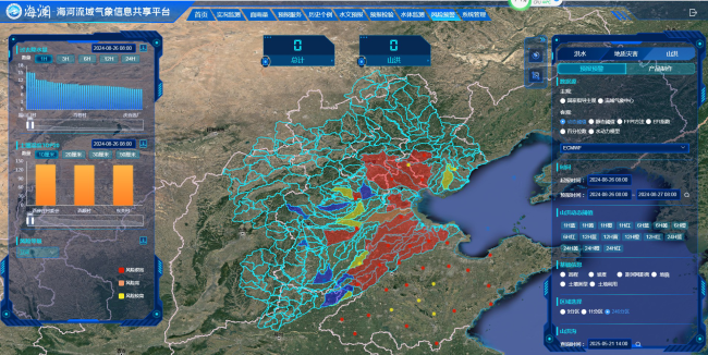天津市气象局将中小河流洪水、山洪和地质灾害等风险预警技术融入海河流域气象信息共享平台,以气象风险预警服务助力水利部门科学开展防汛调度。天津市气象局供图