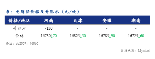 供应端山东某企检修结束,近期处于生产爬坡阶段,湖南某企近期开始检修,预计持续到7月10日,此外云南某企月底也有计划检修,整体供应复产检修并存。需求端方面近期市场反馈下游蓄企有减产计划,消费弱势恐再度持续。短期预计铅价高位震荡走势,下方空间有限。