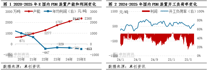 进入2025年,截至6月底,国内PDH装置产能已经出现256万吨的增长,但装置的利润也随之进一步恶化,尤其市场下游需求欠佳,且中美贸易战增加了中国丙烷进口成本,进一步加剧国内PDH装置亏损,而装置的开工负荷率也随利润情况波动,季节性集中检修明显减弱。
