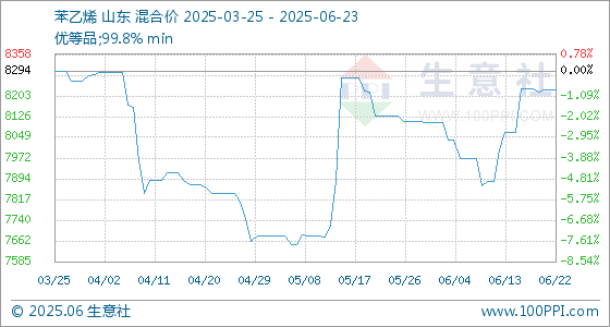6月23日生意社苯乙烯基准价为8226.00元/吨