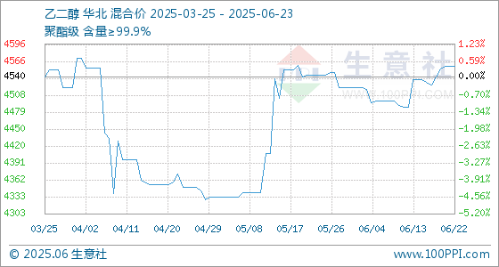6月23日生意社乙二醇基准价为4558.33元/吨