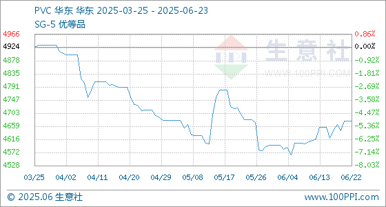 6月23日,生意社PVC基准价为4677.00元/吨,与本月初(4597.00元/吨)相比,上涨了1.74%。