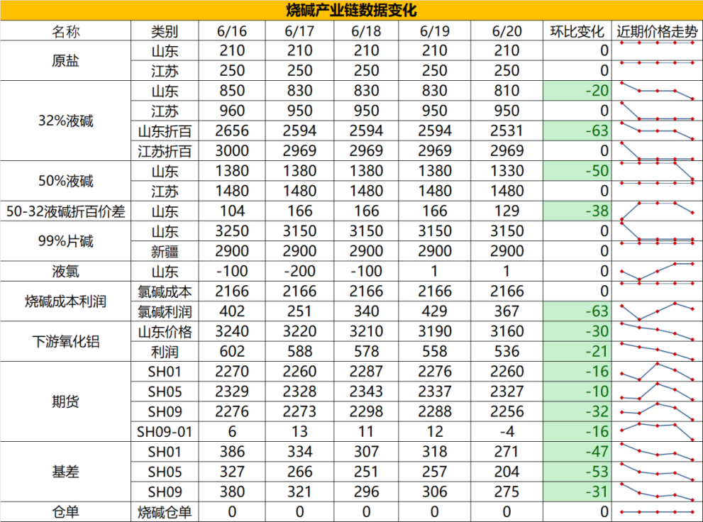 1.由于魏桥原料库存偏高,近日持续下调收货价格以减少送货量,烧碱现货承压,由于烧碱成本塌陷,当前烧碱主逻辑仍在非铝下游需求淡季+压缩上游高利润,随着当前现货高价非铝下游接货放缓,需求承压预期下现货存在下跌预期,但下调幅度也有限。