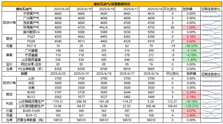 4. 基差走弱,山东民用气4630元/吨,华东民用气4657元/吨,华南民用气4660元/吨。