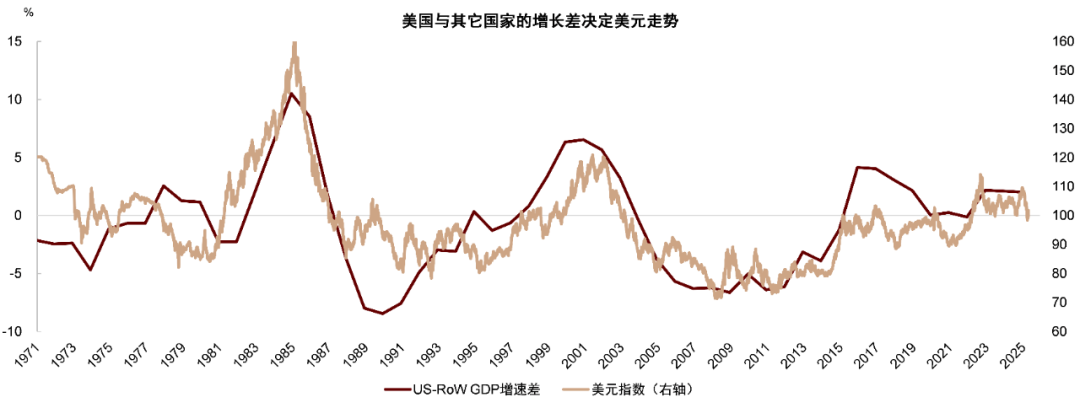 图表:美国与其它国家经济基本面的相对强弱决定美元周期