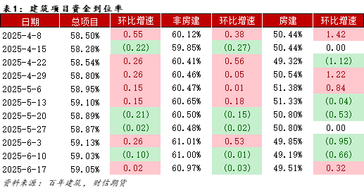 从资金角度来看,建筑项目资金到位率变动不大。房建项目资金到位率整体仍处低位(低于50%),非房建项目资金连续两周微幅下降。