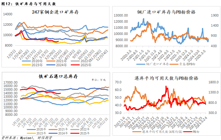 从库存角度来看(以Mysteel五大品种为对象),钢材总库存延续下降,库存绝对值仍于近6年同期低位,钢材供需矛盾暂不大。从供需预期角度来看,建材需求仍有下降空间,板材需求预期仍弱,钢材整体或呈现供稳需降格局,供需矛盾或进一步转弱。关注建材需求进一步下降后钢材库存累积速度。