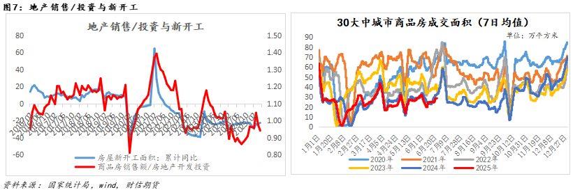 制造业方面,地产资金偏紧态势尚未明显缓解(建筑工程投资维持下降态势),出口交货值累积同比增速亦有所下降,制造业固定资产投资仍有收缩压力(5月当月同比增速为7.79%,连续两个月下滑)。关税扰动下,板材需求预期仍弱。