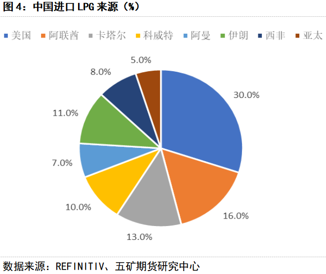 4.替代来源有限且昂贵:虽然中国可以从美国、中东其他国家(卡塔尔、阿联酋、科威特、沙特)、澳大利亚、西非等地进口LPG,但这些来源: