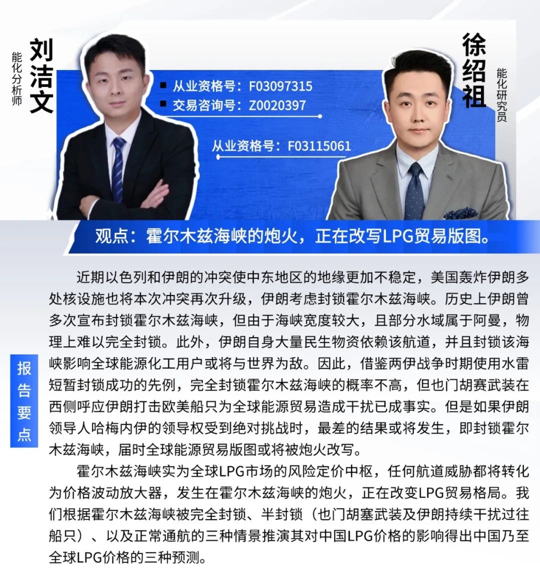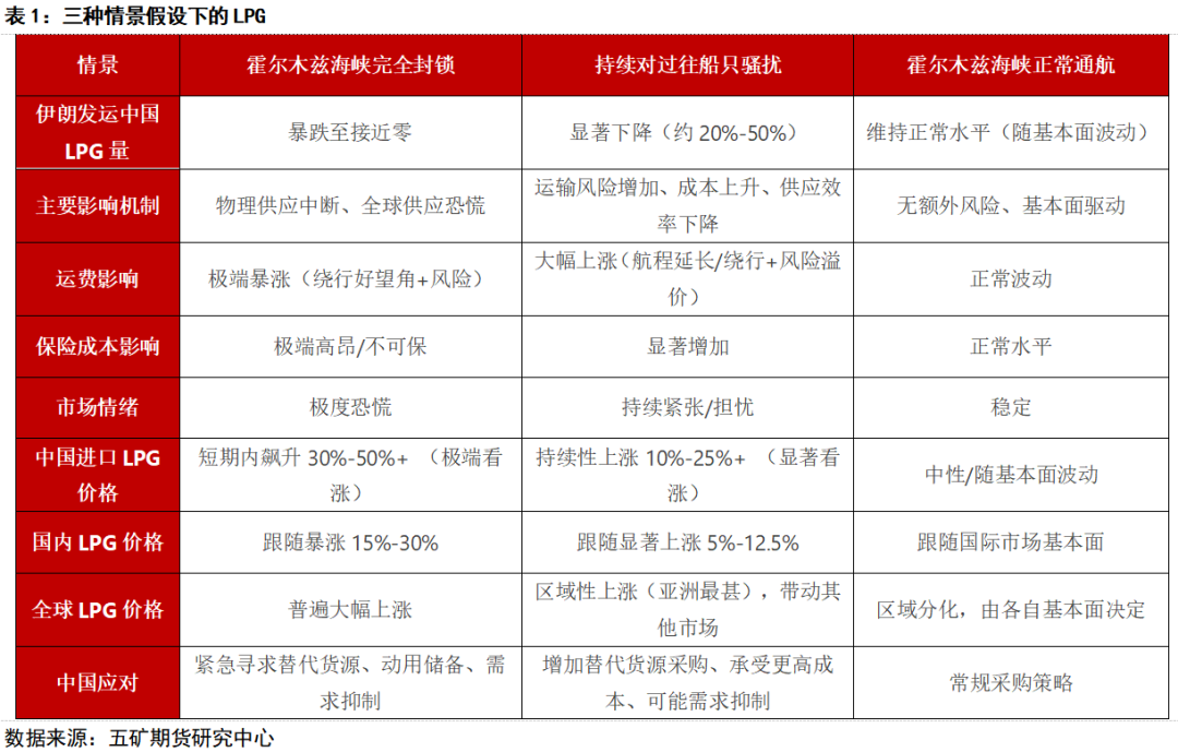 我们根据以下4点核心逻辑来推演在霍尔木兹海峡不同情景下,伊朗发运LPG(液化石油气,主要是丙烷和丁烷)到中国的量及其对LPG价格的影响。