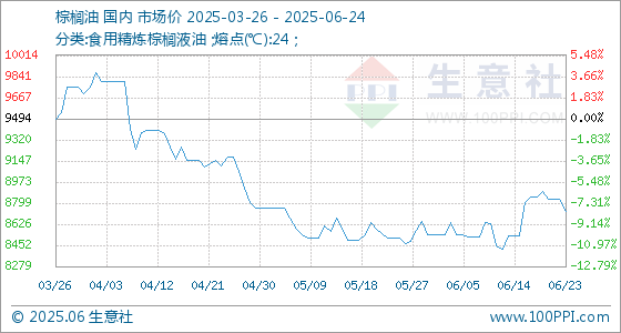 6月24日生意社棕榈油基准价为8732.00元/吨