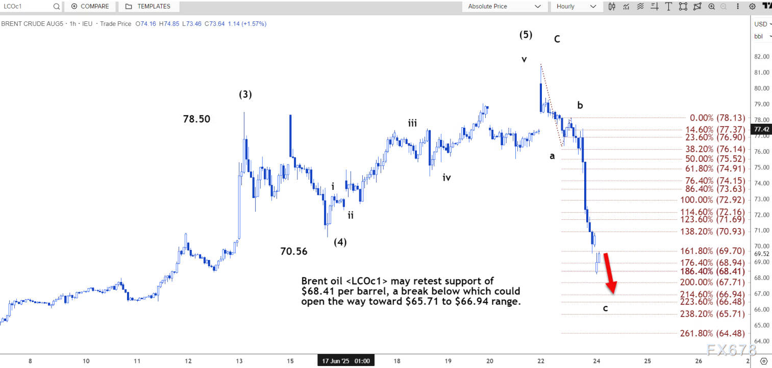 路透技术分析师指出,布伦特原油可能重新测试每桶68.41美元的支撑位,跌破该水平可能打开通往65.71美元至66.94美元区间的道路。