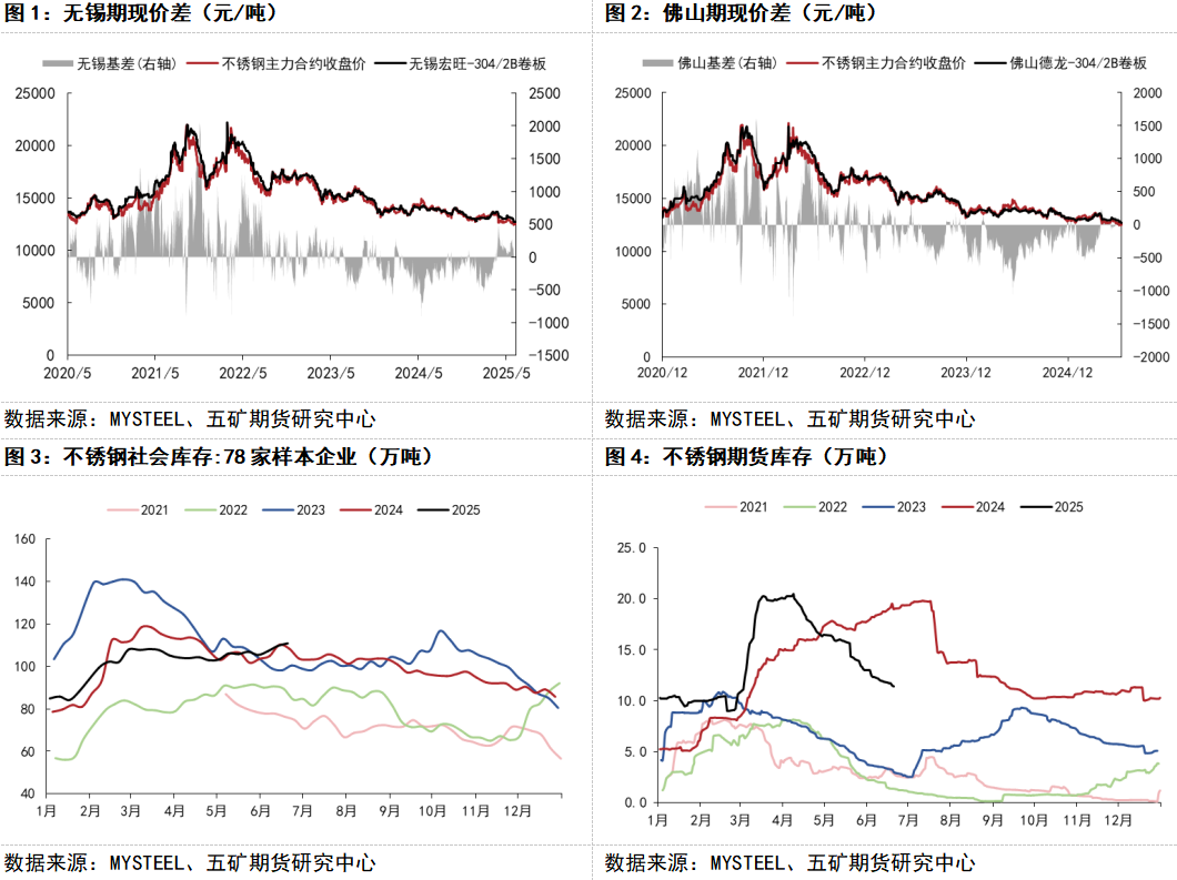 近期不锈钢现货频繁调价,贸易商报价混乱,一度出现踩踏现象,反映出市场恐慌情绪蔓延。基差结构发生显著变化,从前期维持的稳定升水结构快速缩窄,目前已达到平水甚至出现贴水格局。现货端跌幅大于期货端,表明实体需求疲软程度超出市场预期。