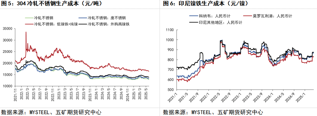 当前不锈钢产业链各环节均面临严峻的成本压力,无论是成材端还是镍铁端,价格均已逼近甚至跌破行业平均成本线。其中,国内镍铁厂普遍陷入亏损,仅印尼铁厂凭借本土镍矿资源,仍能维持部分利润空间。然而,随着中下游利润持续被挤压,降价压力正逐步向上游传导,最终将冲击矿端的利润结构。目前镍矿市场受印尼政策影响显著,政府通过出口配额、关税调整等手段控制供应,使得矿价维持相对高位,带有明显的政治干预色彩。然而,在客观供需关系面前,若下游需求持续疲软、不锈钢及镍铁价格进一步下跌,印尼政府将面临越来越大的市场压力。