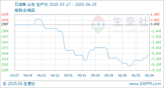 6月25日,生意社石油焦基准价为2237.50元/吨,与本月初(2225.00元/吨)相比,上涨了0.56%。