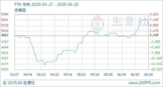 6月25日,生意社PTA基准价为5114.00元/吨,与本月初(4965.62元/吨)相比,上涨了2.99%。