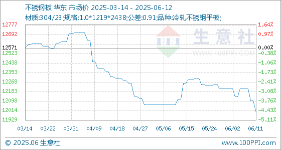 6月12日生意社不锈钢板基准价为12000.00元/吨