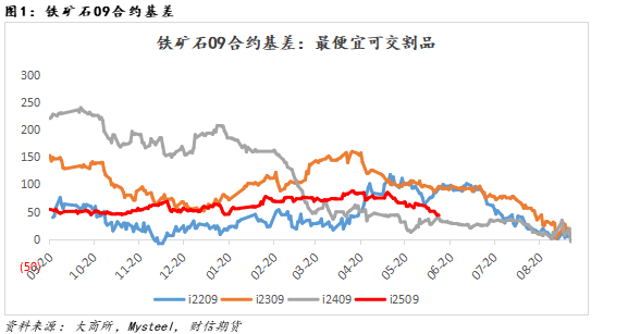 从基差角度来看,铁矿石主力09合约基差近期有所走弱,铁矿强现实格局随着铁矿发运旺季到来及铁水产量的下滑而有所转弱。从基差季节性走势来看,目前铁矿石09合约基差位置整体处于近4年中性水平。