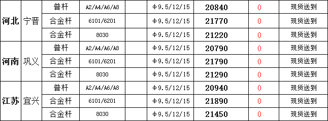 6月25日宁晋市场普铝杆现货报盘价20840元/吨,较上一交易日报价持平;巩义市场普铝杆现货报盘价20790元/吨,较上一交易日报价持平;宜兴市场普铝杆报盘价20940元/吨,较上一交易日报价持平。