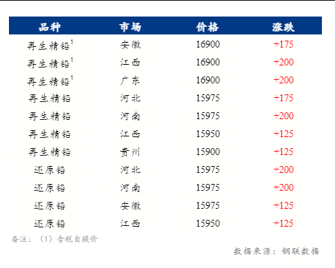 安徽市场A企业再生精铅现金价16000元/吨出厂无成交,炼企挺价。
