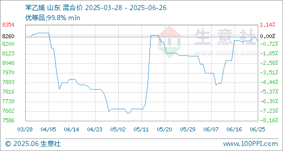 6月26日生意社苯乙烯基准价为8224.00元/吨