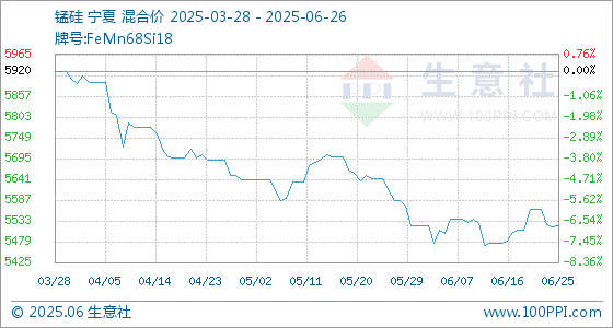 6月26日,生意社锰硅基准价为5520.00元/吨,与本月初持平。