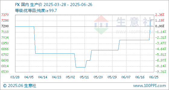 6月26日,生意社PX基准价为7300.00元/吨,与本月初(6850.00元/吨)相比,上涨了6.57%。