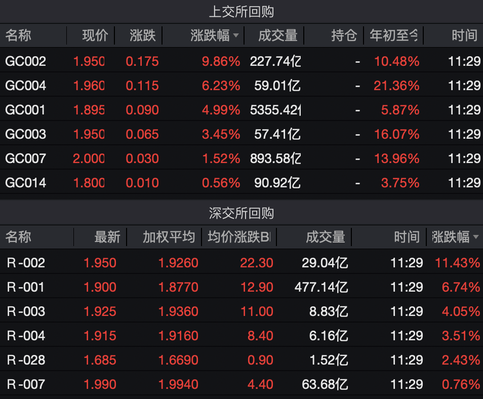 沪深两市多个其他期限的国债逆回购品种的年化收益率近日也不同程度上涨。