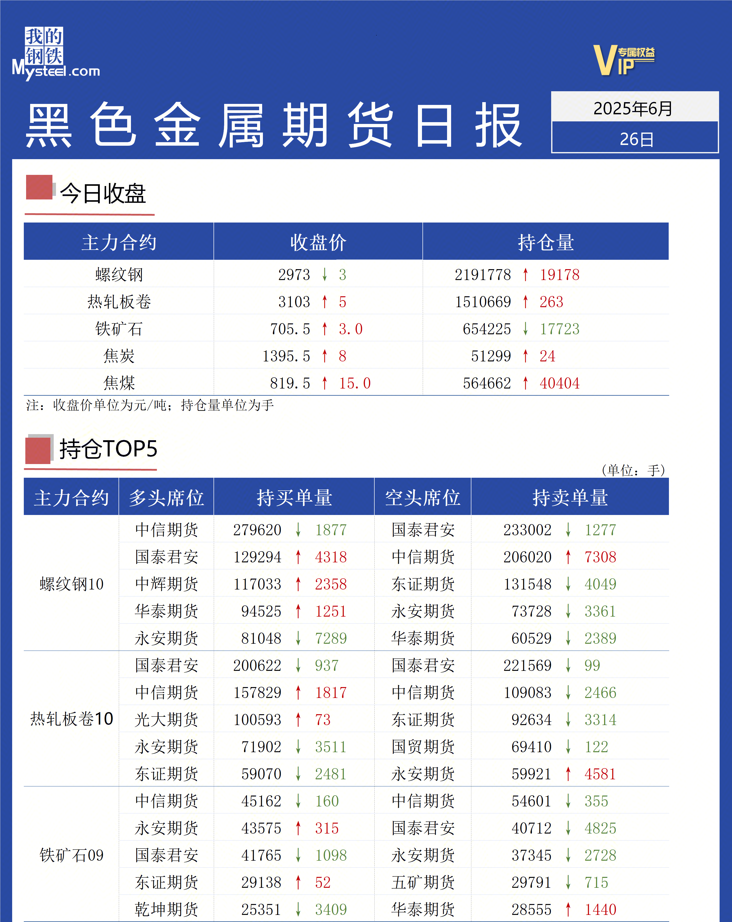 【Mysteel:黑色金属期货日报解读6月26日】研究员:金岭
