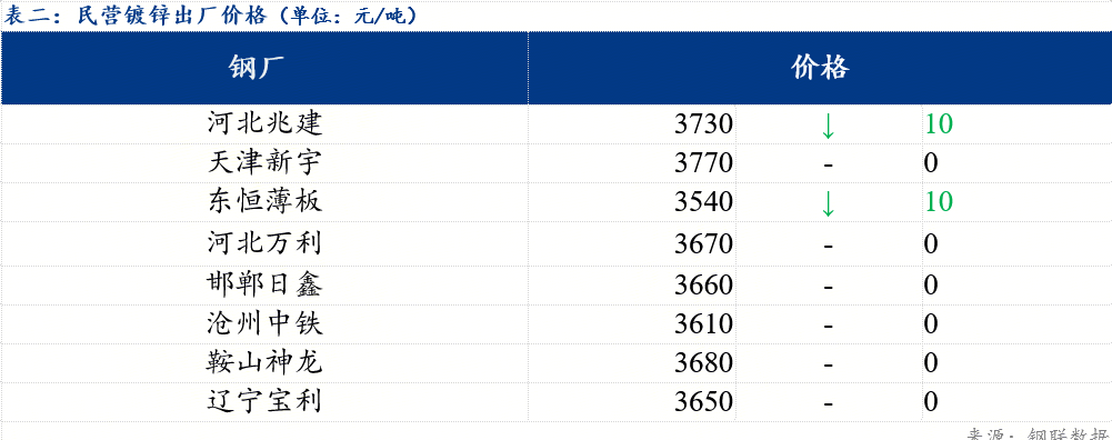 今日北方民营钢厂镀锌出厂指导价在3540元/吨-3770元/吨。