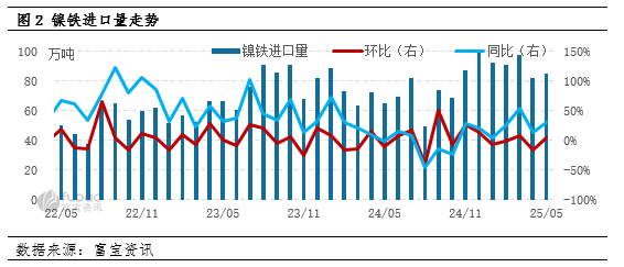 2025年1-5月国内镍铁进口量中印尼地区占比在97.49%,占据绝对优势。因此不难看出,印尼当地政策对国内镍市场影响深远。而在上半年印尼镍矿新政落地引发关注,其中新政规定,镍矿税率从固定10%调整为与LME镍价挂钩的浮动税率14%-19%(其中镍价≤1.8万美元/吨时税率14%,≥3.1万美元/吨时税率19%)。伴随新政落地,印尼当地4月下旬中小矿企产能利用率一周内从85%降至75%,高成本矿山被迫停产,货源一度紧张,但伴随菲律宾雨季结束后,原料供应再次充足,成本支撑不再明显,镍价再次出现偏弱走势。