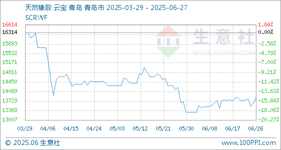 6月27日生意社天然橡胶基准价为13878.33元/吨