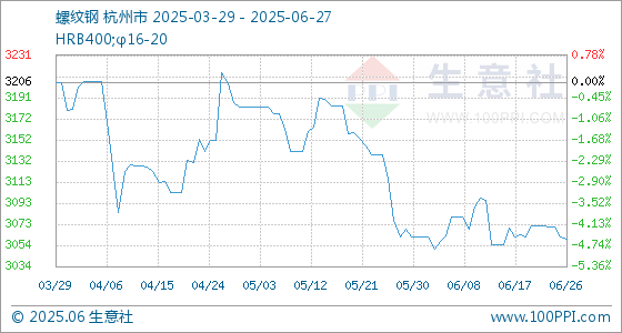 6月27日生意社螺纹钢基准价为3060.33元/吨