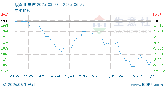 6月27日,生意社尿素基准价为1822.60元/吨,与本月初(1892.00元/吨)相比,下降了3.67%。