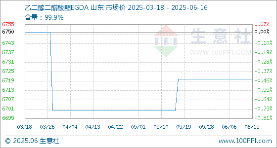 6月16日,生意社乙二醇二醋酸酯EGDA基准价为6720.00元/吨,与本月初持平。
