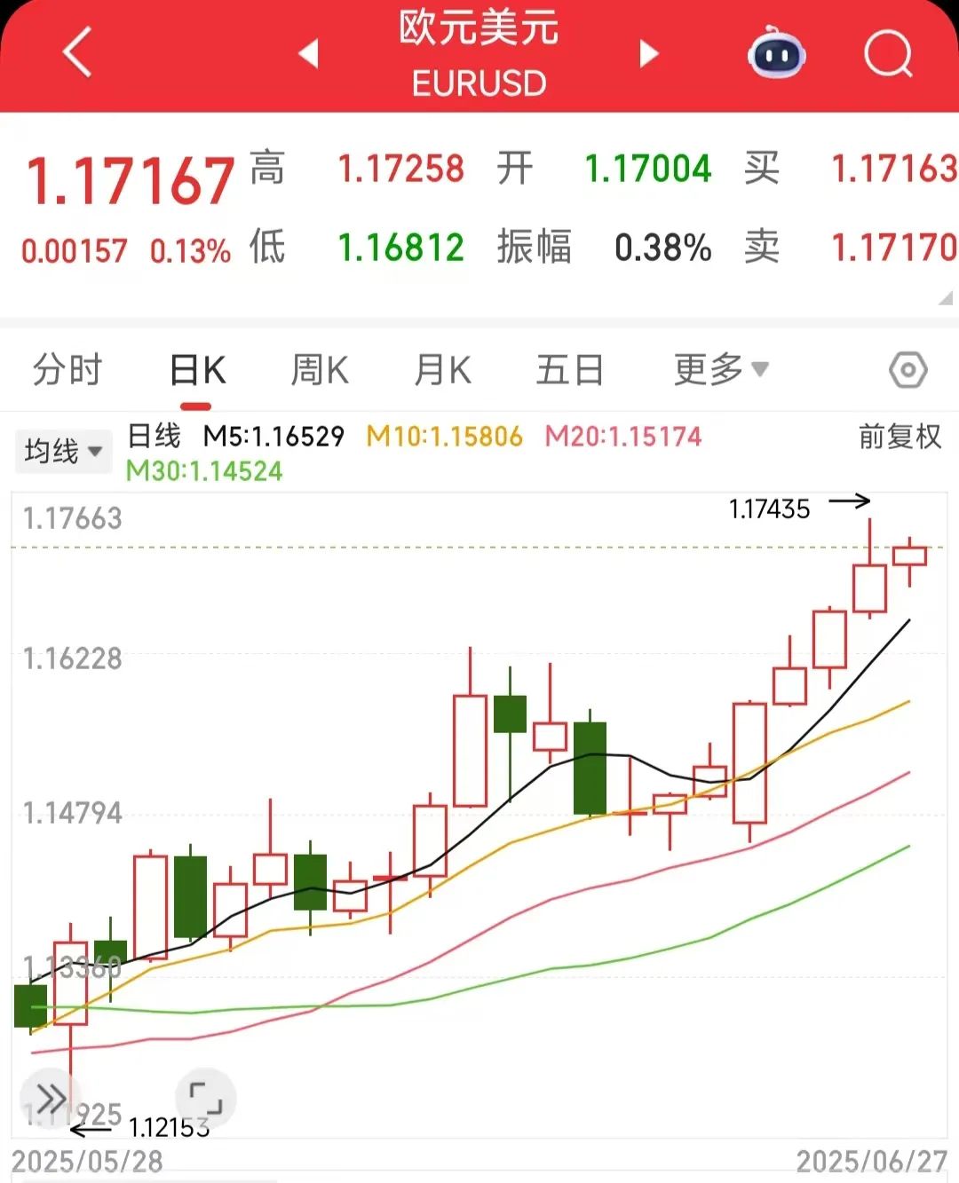 近期,欧元对美元汇率屡创新高。继6月24日突破1比1.16关口后,欧元对美元汇率6月27日升至1比1.17,达到2021年9月以来的最高水平。6月27日,截至北京时间15时48分,欧元对美元报价1.17167,上涨0.13%。