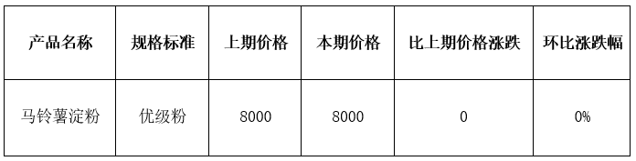 注:优级粉质量等级:白度92%,粘度1300以上,此价格采集5家国内高端马铃薯淀粉企业的出厂价格,产量占比行业生产总量的80%以上。注:价格为企业报价。