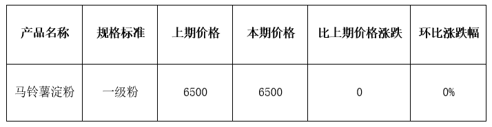 注:一级粉质量等级:白度90%,粘度1100以上,此价格采集27家国内主流马铃薯淀粉企业出厂价格,产量占比行业生产总量的75%以上。注:价格为企业报价。