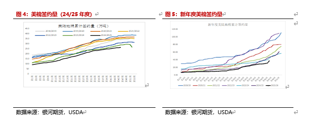 需求端无论24/25年度还是25/26年度签约情况表现较为一般,虽然说近几周美棉签约情况明显好转但仍然处于历年同期较低的位置。