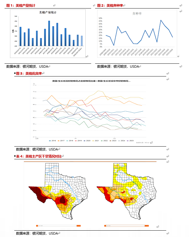 美国方面来看产量较上一年度相比略有调减,主要由于前期美棉主产区由于干旱原因使25/26年度美棉产量有所下调,但近期随着降雨量回升干旱情况有所好转,预计产量未来大幅下调的可能性不大。