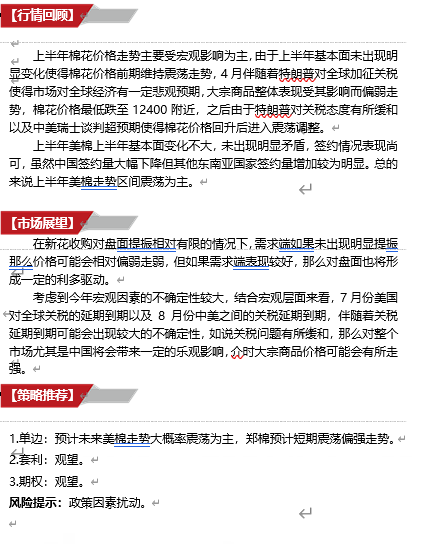 考虑到今年宏观因素的不确定性较大,结合宏观层面来看,7月份美国对全球关税的延期到期以及8月份中美之间的关税延期到期,伴随着关税延期到期可能会出现较大的不确定性,如说关税问题有所缓和,那么对整个市场尤其是中国将会带来一定的乐观影响,介时大宗商品价格可能会有所走强。