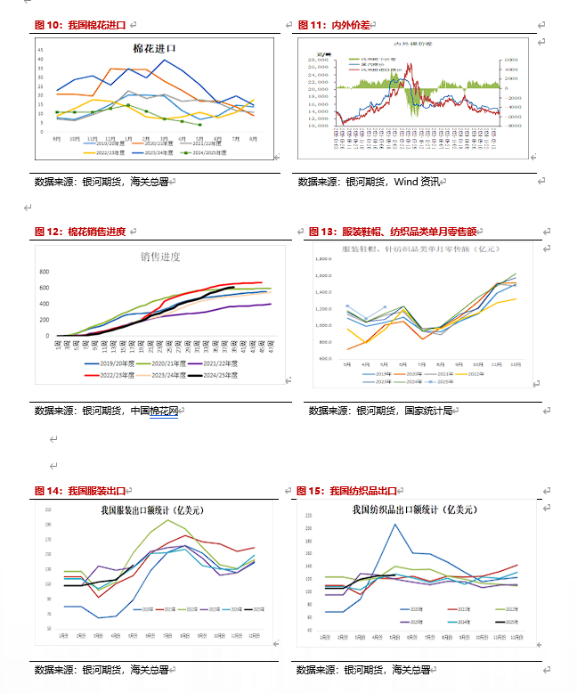 第二阶段考虑到25/26年度棉花种植面积有所增加预计产量较24/25年度相比相差不大甚至有略增的可能,今年据了解上游轧花厂包厂意愿不高,并且目前棉花价格处于历史的中低位置,预计新棉收购价格可能不会很高,可能对盘面提振作用不大。