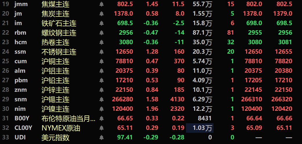 截至午间收盘,内盘基本金属全线飘红,沪镍涨1.96%。沪铜涨0.47%,沪铝涨0.39%。沪锌涨0.84%,沪锡涨1.58%。沪铅涨0.53%。