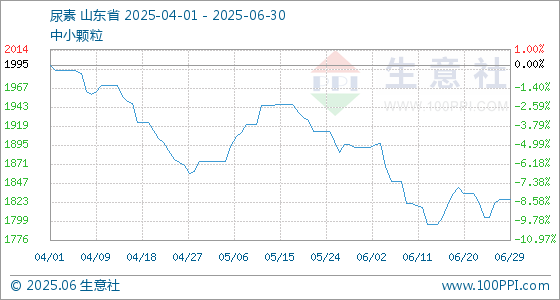 6月30日,生意社尿素基准价为1827.00元/吨,与本月初(1892.00元/吨)相比,下降了3.44%。