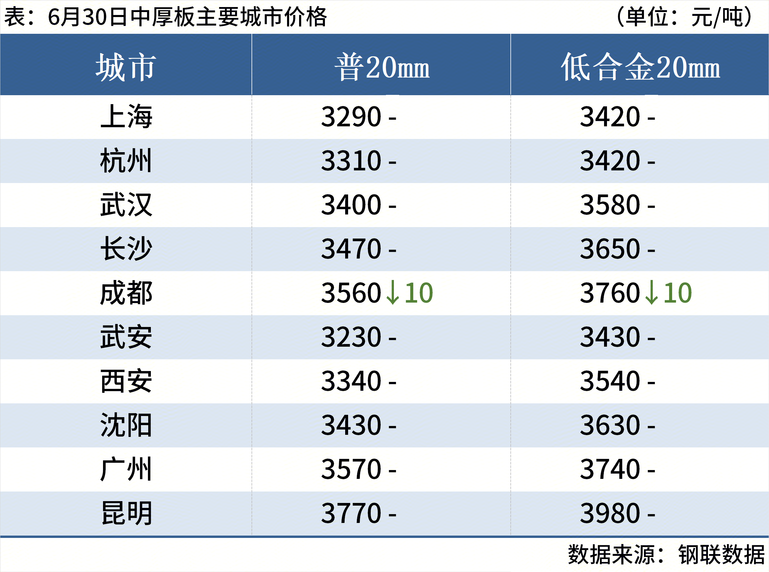 中厚板:6月30日,全国24个主要城市20mm普板均价3417元/吨,较上一交易日下跌1元/吨。下游制造业采购节奏平稳,未出现集中补库,市场观望情绪较浓。多数商家持稳报价,谨慎观望期货走势及钢厂政策,短期仍以出货为主,避免库存累积。综合来看,若期货继续偏强运行,现货或小幅探涨,但需求端支撑不足,预计7月1日价格涨幅有限,整体维持震荡格局。