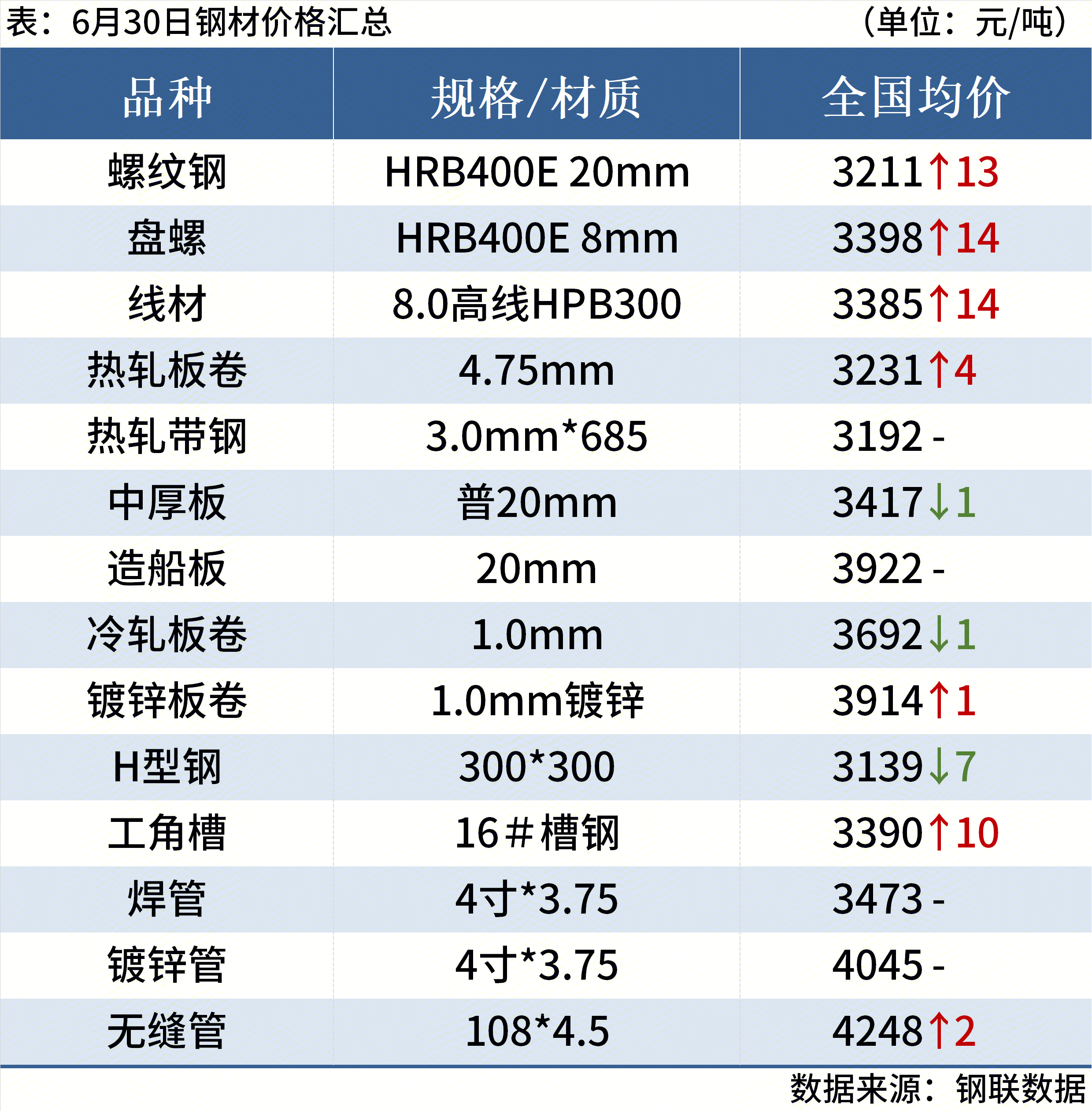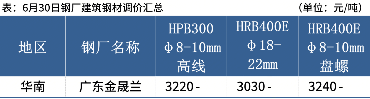 6月30日,国内钢厂建筑钢材出厂价以稳为主。