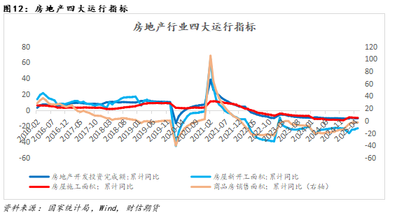 作为影响新开工的趋势性指标,全国房价仍未企稳回升,地产新开工或继续承压运行。新开工面积的持续下降,后续地产用钢需求或将进一步走弱(新开工后的半年或是地产用钢需求的主要时段)。