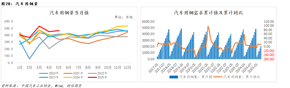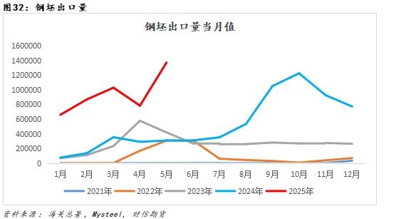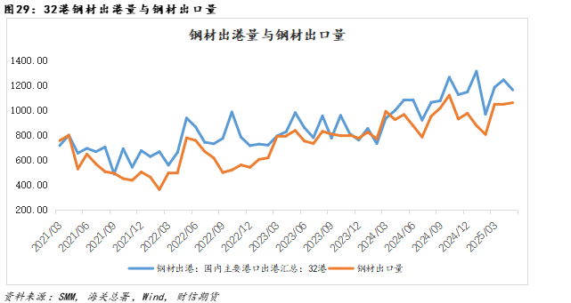 展望后市,钢材供给端或面临粗钢调控,但政策何时落地、如何执行尚存不确定性。需求方面,地产弱势下行背景下,建材需求预期偏弱,关税及反倾销扰动下,板材出口仍有下降预期(从高频数据来看,钢材出口韧性较强),后期需求偏弱预期何时面临修复?综上,下半年影响钢材价格的核心矛盾或在于政策减产VS出口受阻、低库存VS弱需求的博弈。
