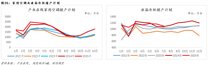 家电板块,2025年下半年或呈现内需动能减弱,外需承压明显格局。据产业在线最新发布的数据,7家用空调内销排产1001万台,较去年同期内销实绩增长8.1%;8月内销排产617.5万台,同比下滑19.2%;9月内销排产562.5万台,同比下滑7.8%,内销终端市场增长不及预期(当前政策刺激边际效应逐渐递减),厂商收缩排产优化库存以应对终端疲软表现,国补政策全年实施或限制排产降幅。外需方面,关税扰动下抢出口补库周期结束(6月底美国实施全球钢铁衍生关税,中国冰箱出口美综合税率超60%),外需或进入下通道。