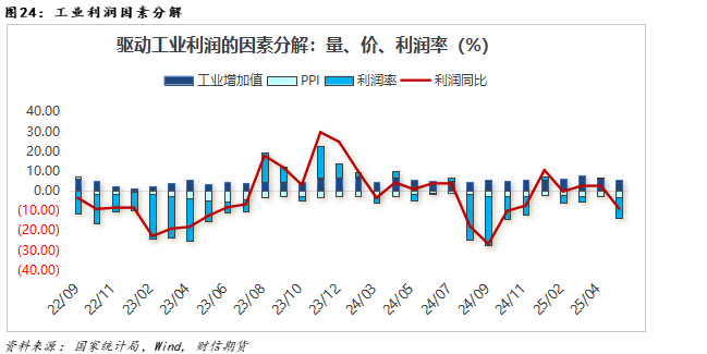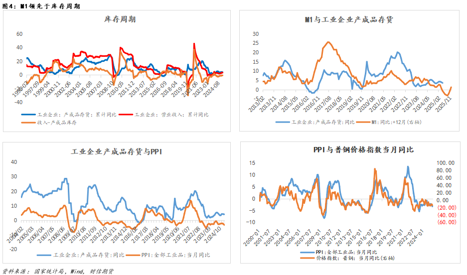 当前中美库存周期处于明显错位状态。消费韧性与政策套利延长,美国库存周期正处于被动补库状态,但90天关税豁免期结束(2025年8月)后,“抢进口”退潮,高利率或触发主动去库,核心关注点在于美国降息时点。中国结构性补库与主动去库并存,补库集中于政策扶持(设备更新、新能源)及外需共振领域(家具、纺服),上游仍待出清,地产拖累、工业企业利润不佳压制下游补库空间(详见下文)。从时间节点来看,重点关注四季度中美是否出现同步补库(M1领先于库存周期,从领先性来看,国内四季度或有主动补库动作,需求回升进而带动PPI回升)。从历史经验来看,PPI与库存周期存在着较强的相关性,且PPI的拐点通常领先于产成品库存的拐点,对于库存周期的切换具有较强的前瞻意义(历史经验表明,库存周期变化与钢铁价格亦存在强相关关系)。